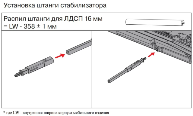 Штанга стабилизации широких баз ALPHALUX 1100мм для направляющих Soft+Push, для ящика CRYSTAL / ЛДСП 16мм (штанга 1шт, крепления 2шт)