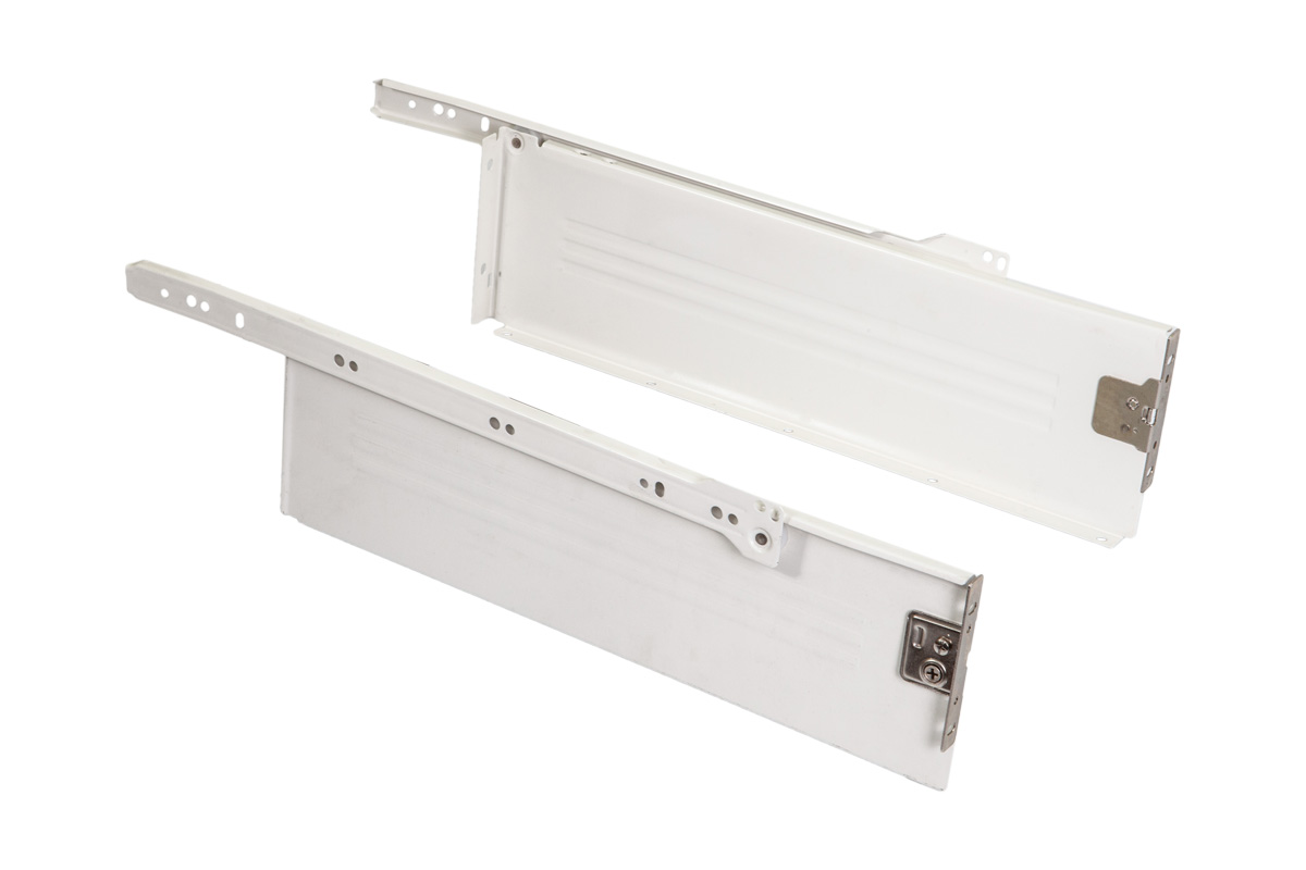 Цельнометаллический выдвижной ящик, построен на базе роликовых направляющих. Имеет две металлические боковины. Имеет неполное выдвижение. Может дополнительно комплектоваться доводчиком. Нагрузка до 25 кг. Используется толщина 1 мм после покраски. Отсутствуют регулировки по плоскостям.