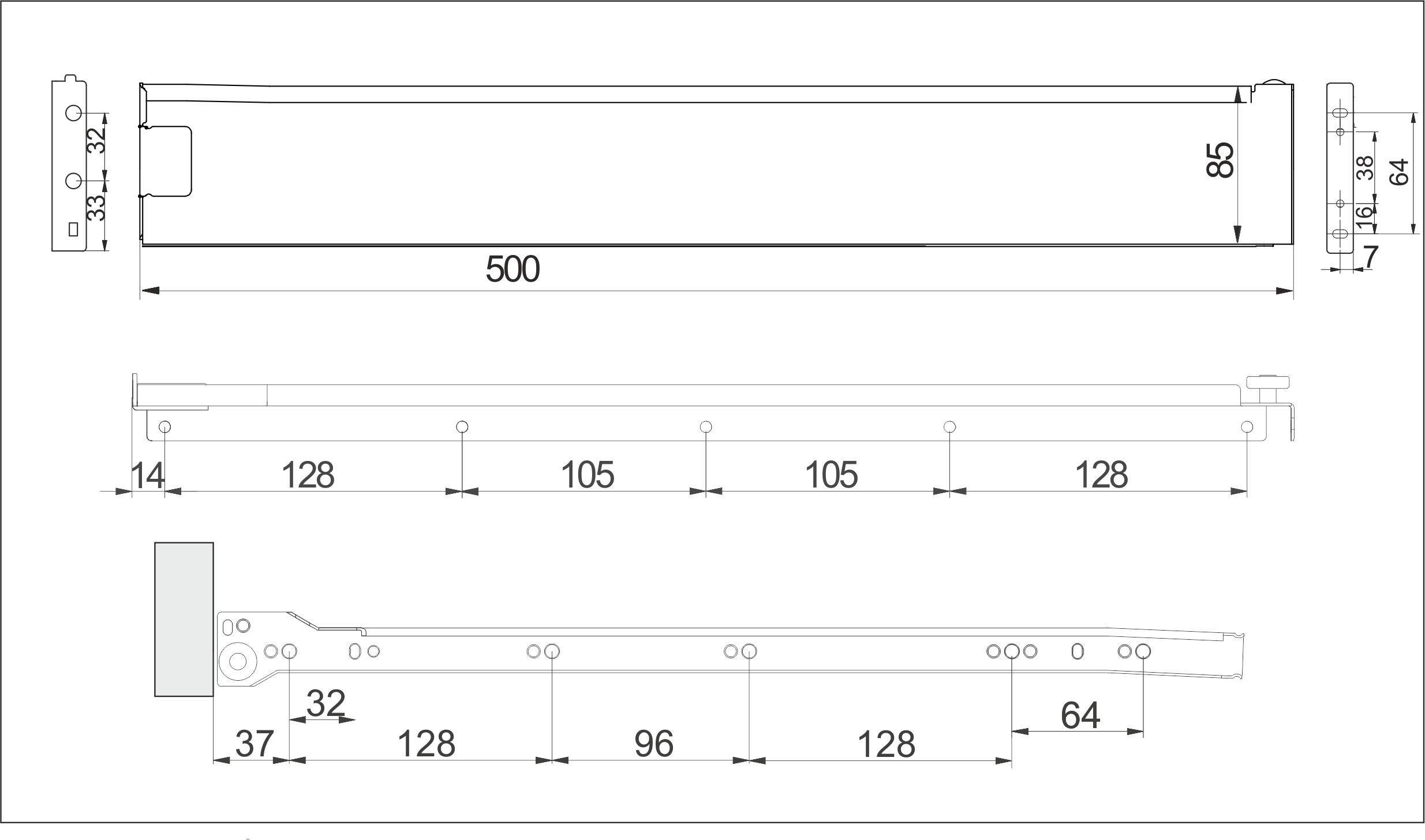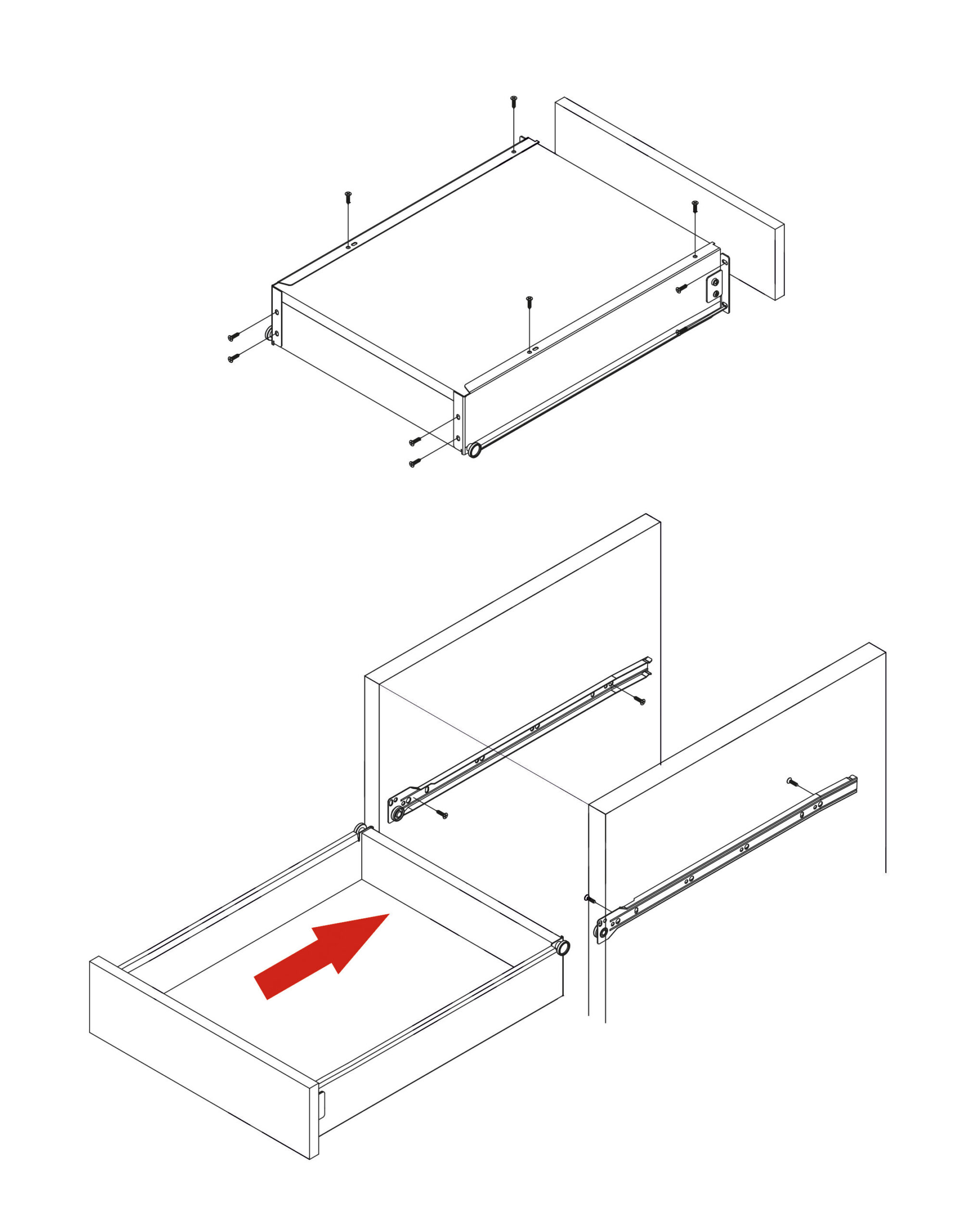 Цельнометаллический выдвижной ящик, построен на базе роликовых направляющих. Может дополнительно комплектоваться доводчиком. Нагрузка до 25 кг. Используется толщина 1 мм после покраски. Отсутствуют регулировки по плоскостям.