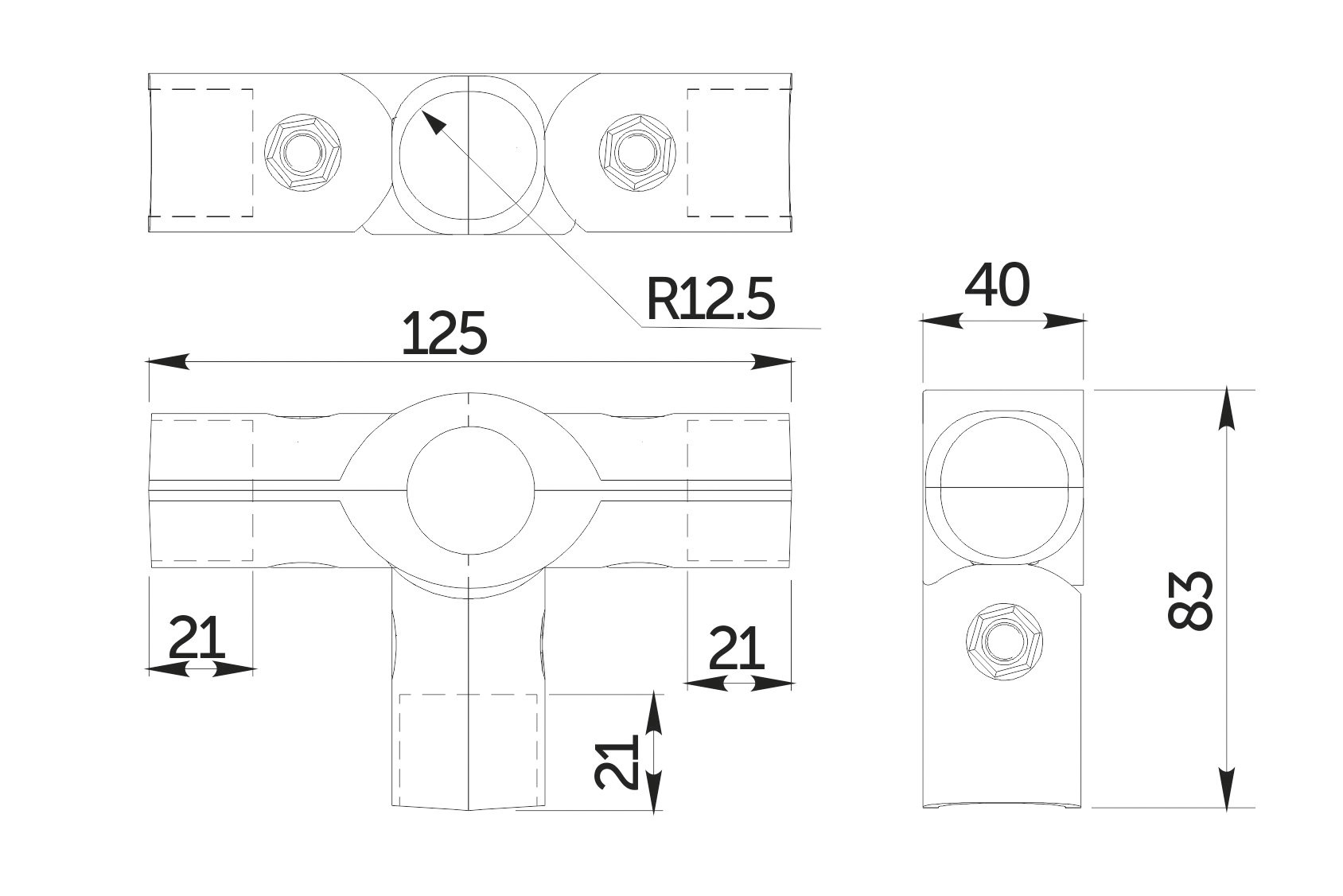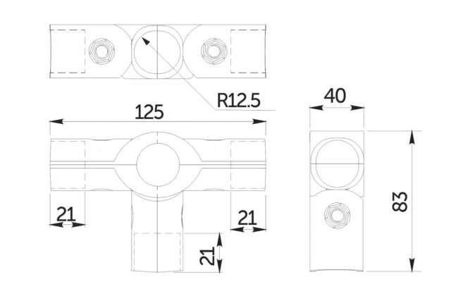 Применяется в системе TRIS для соединения труб d25 в перпендикулярных плоскостях.
