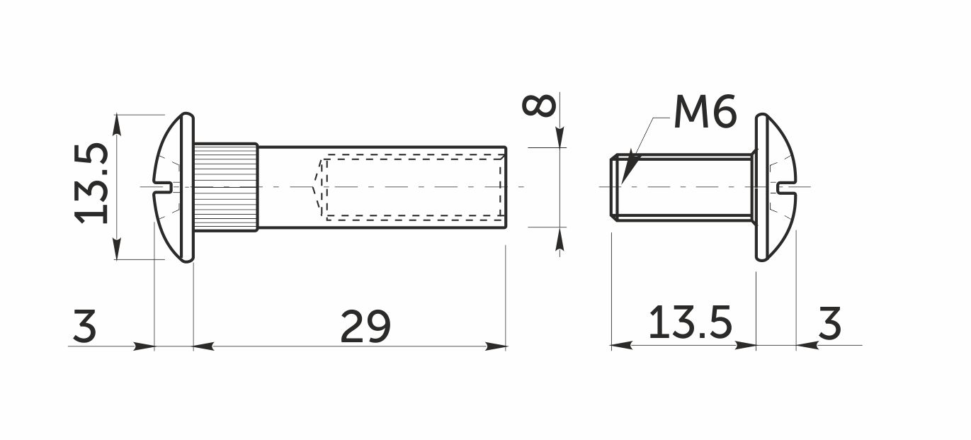 Стяжка межшкафная d8 М6х29мм (уп/500шт) AKS 39533
