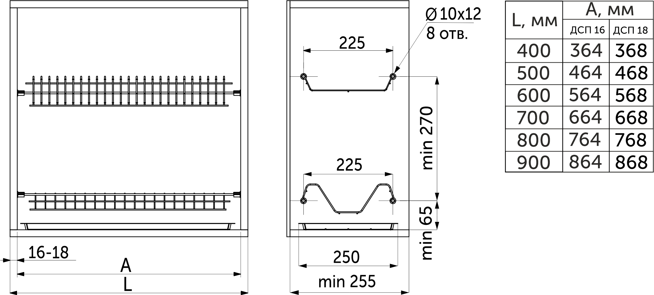 — подходит для установки в ящик как с ДСП 18 мм, так и с ДСП 16 мм,