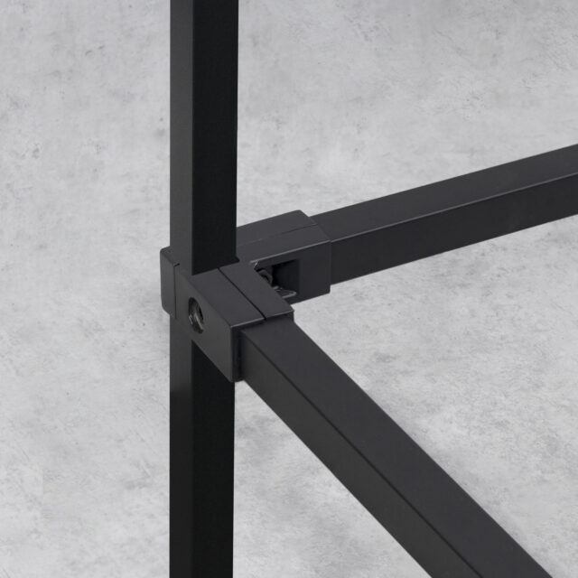 Труба изготовлена из холоднокатанной стали. Покрытие — порошковая краска, цвет — черный, матовый муар. Предназначена для быстрой сборки металлоконструкций системы QUADRO (по аналогии системы TRIS), торгового оборудования. Труба представлена в длине L-3000мм, в толщине стали 1,0мм.