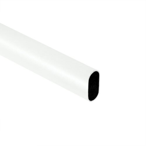 Труба изготовлена из холоднокатанной стали. Покрытие — порошковая краска, цвет — белый матовый. Предназначена для использования в качестве гардеробной штанги.