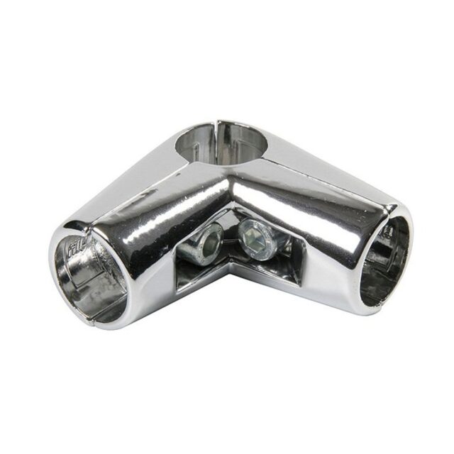 UNO 004 угловой соединитель 3-х труб (Т3938) — крепежный элемент, используемый при сборке торгового оборудования. Представляет собой угловой зажим трех труб диаметром 25 мм.