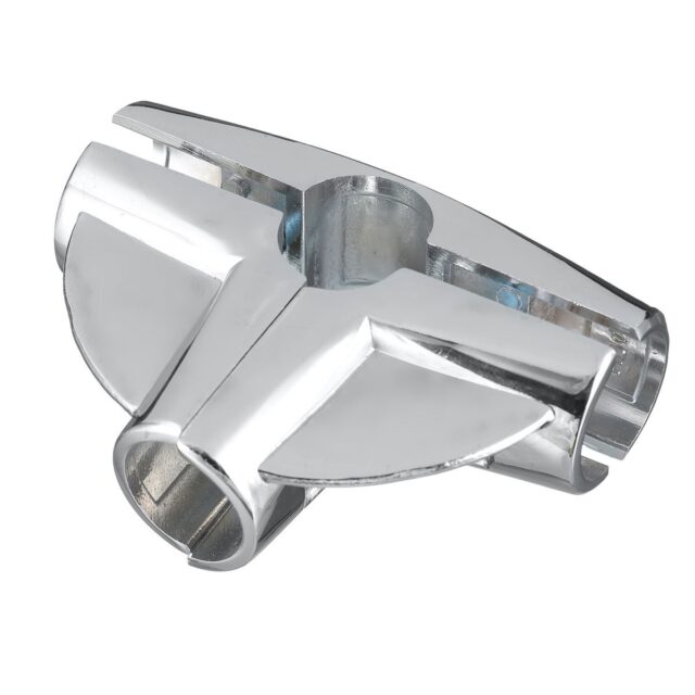 UNO 009 угловой соединитель 4-х труб с 2-мя полками (Т4038) — крепежный элемент, используемый при сборке торгового оборудования. Представляет собой угловой зажим четырех труб диаметром 25 мм, с двумя площадками для установки деревянных или стеклянных полок.