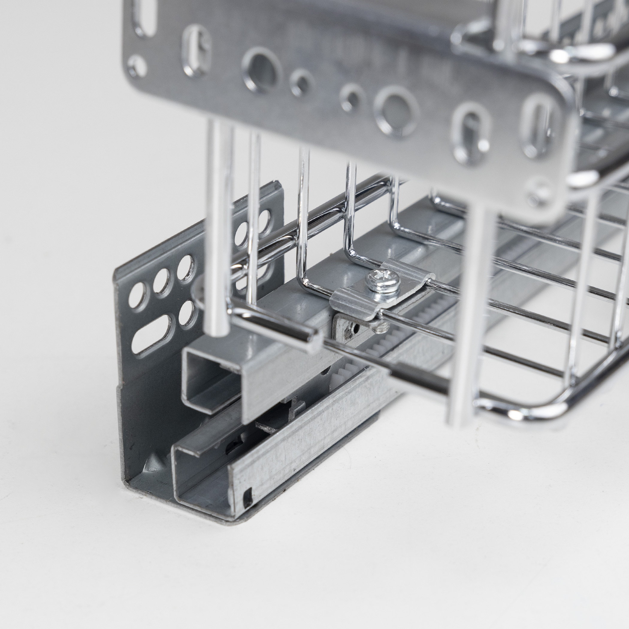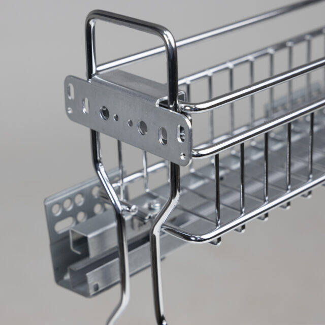 Продуманная конструкция корзин помогает организовать хранение банок, бутылок, столовой посуды, продуктов на кухне.