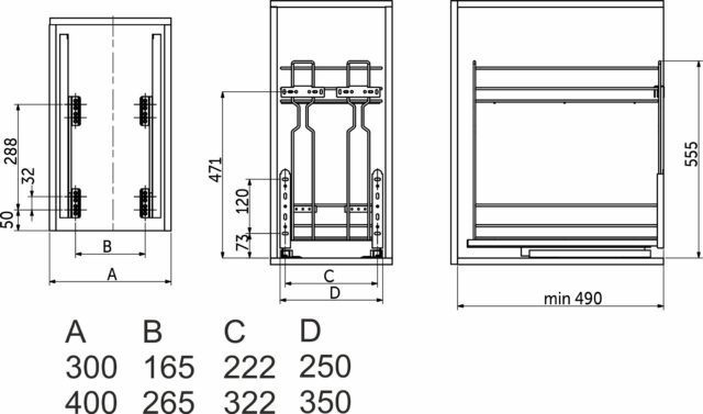 Выдвижная корзина-карго 300 крепл.нижнее, графит 89651