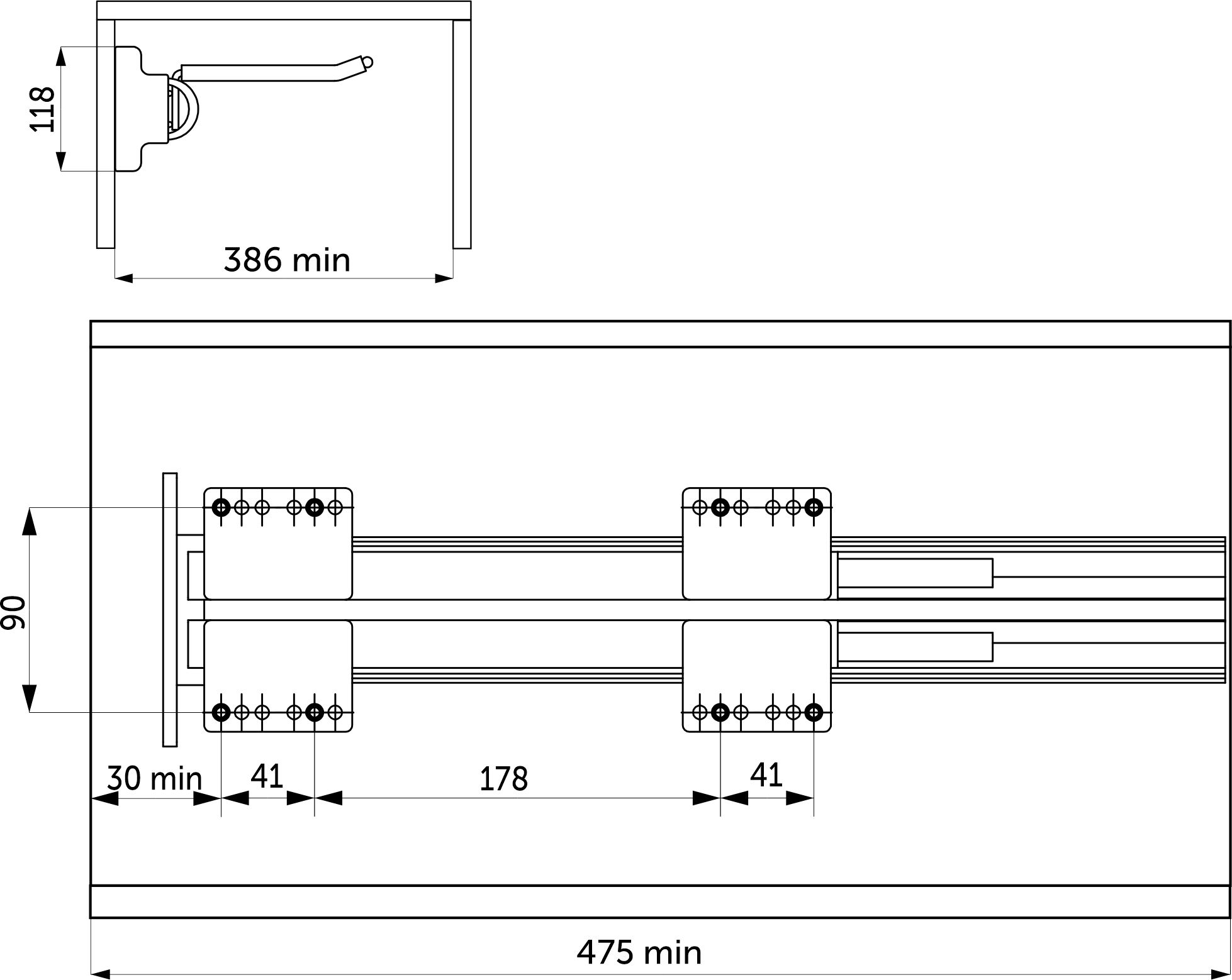 -направляющие: L-450 мм скрытого монтажа полного выдвижения с доводчиком (max нагрузка на направляющие — 25 кг);