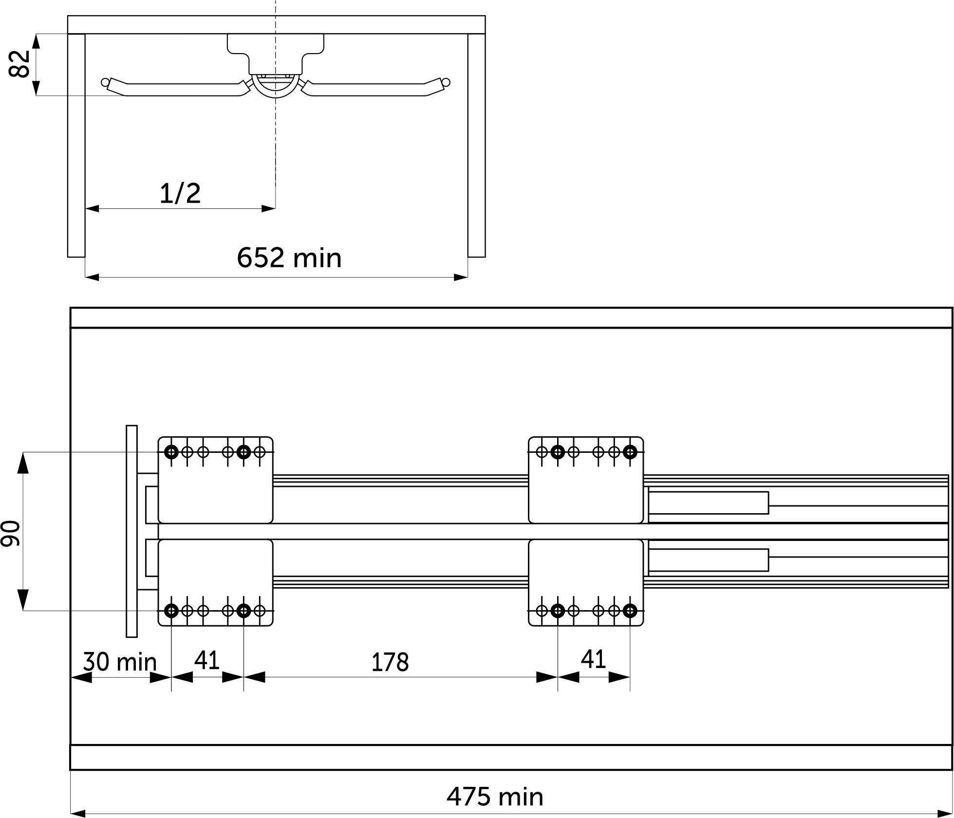 -направляющие: L-450 мм скрытого монтажа полного выдвижения с доводчиком (max нагрузка на направляющие — 25 кг);