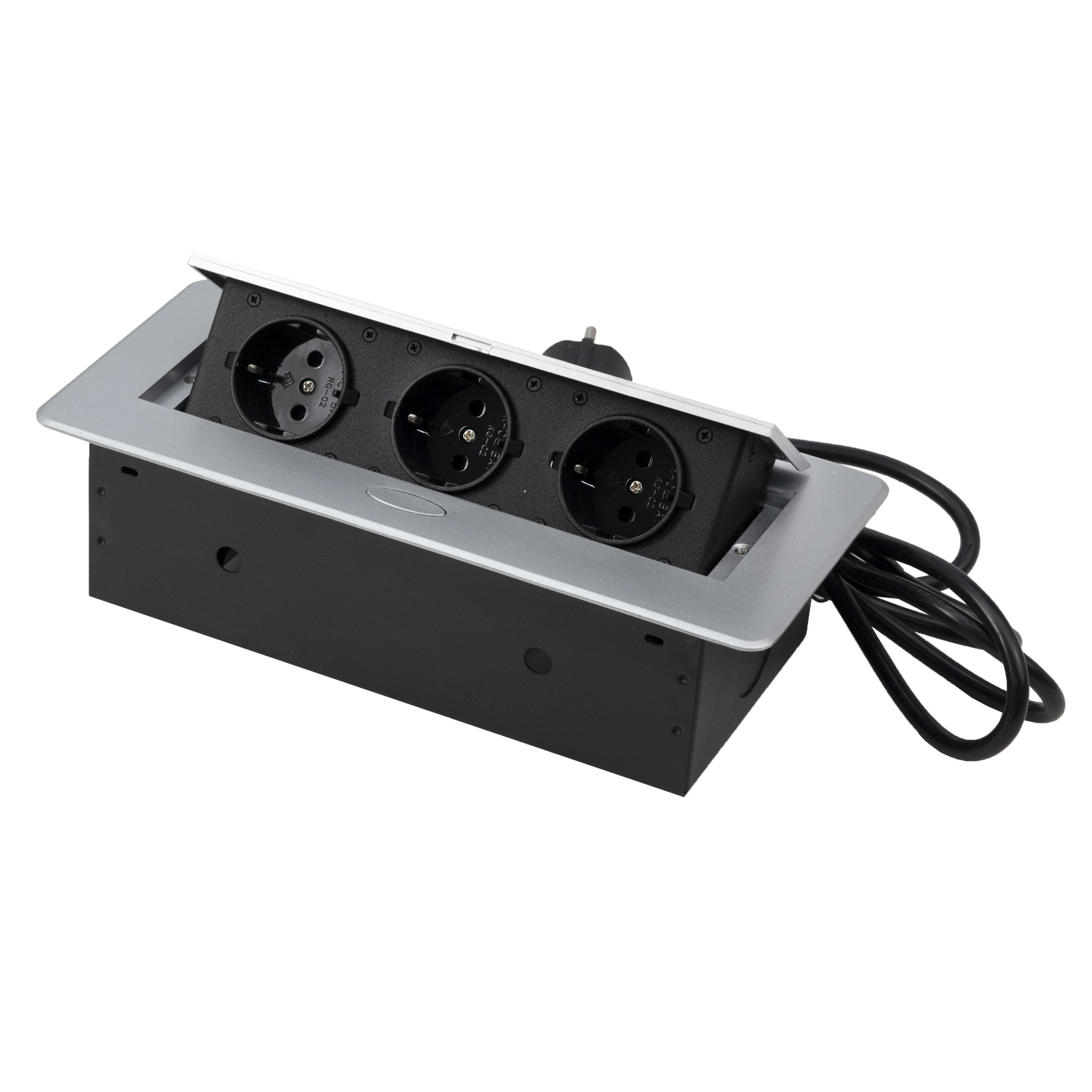 3 евророзетки с заземлением 220В (Schuko), цвет алюминий, мощность 3500Вт