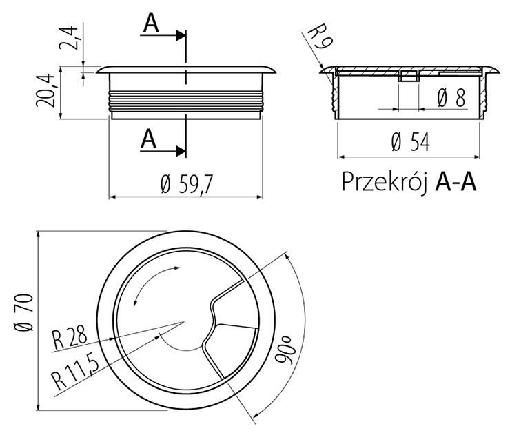 Заглушка кабель-канала пластик алюминий — элемент офисного оснащения, устанавливаемый на рабочем столе в специальное отверстие, служащее для пропуска проводов оргтехники. Заглушка придает эстетичный внешний вид поверхности офисного стола.