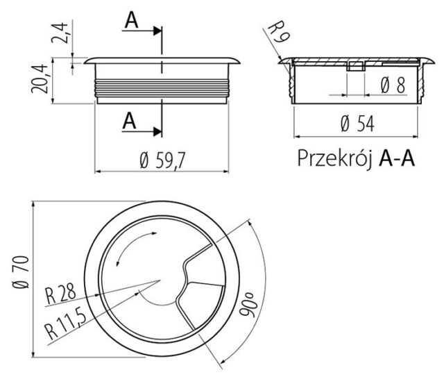 Заглушка кабель-канала пластик коричневая — элемент офисного оснащения, устанавливаемый на рабочем столе в специальное отверстие, служащее для пропуска проводов оргтехники. Заглушка придает эстетичный внешний вид поверхности офисного стола.